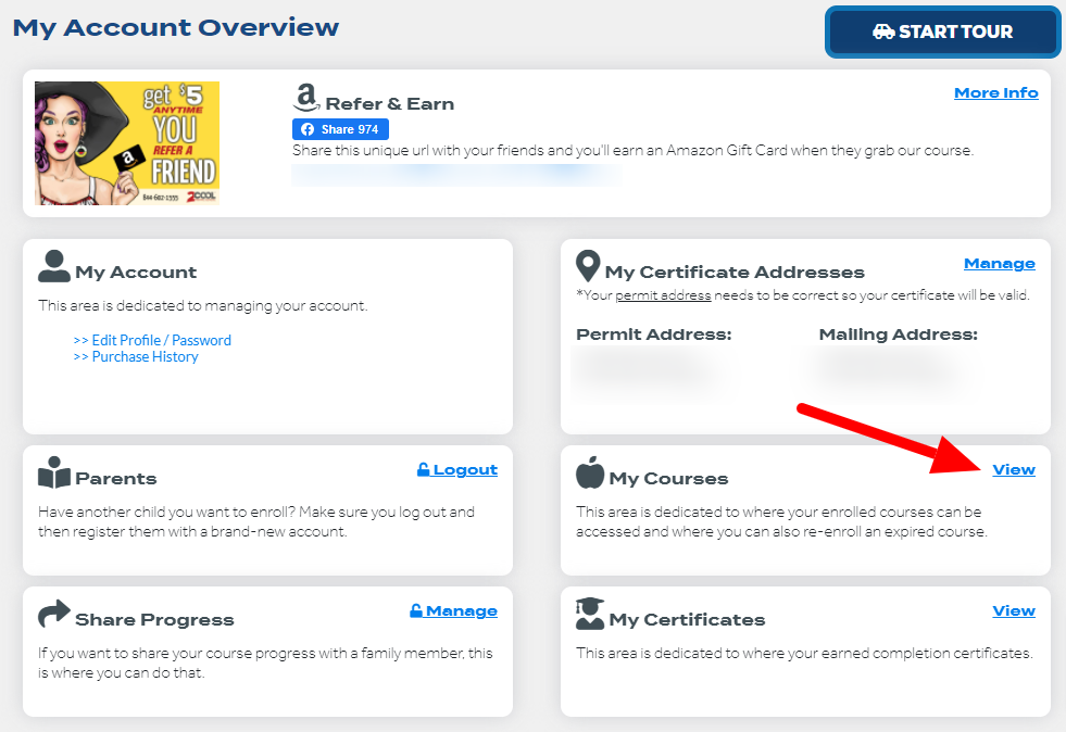 OHIO EXCLUSIVE: This applies to any student who has registered for the 8 hour Online Adult Remedial Course for Ohio, but hasn't started the course yet. Step 1: View the Dashboard After you log in, you will be taken to your account overview. Navigate ...