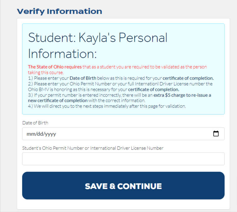 - Enter the address listed on your permit. This will be used to validate your identity, and it will also be on your certificate of completion.