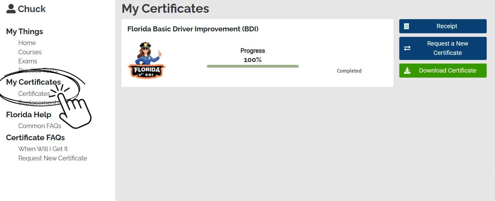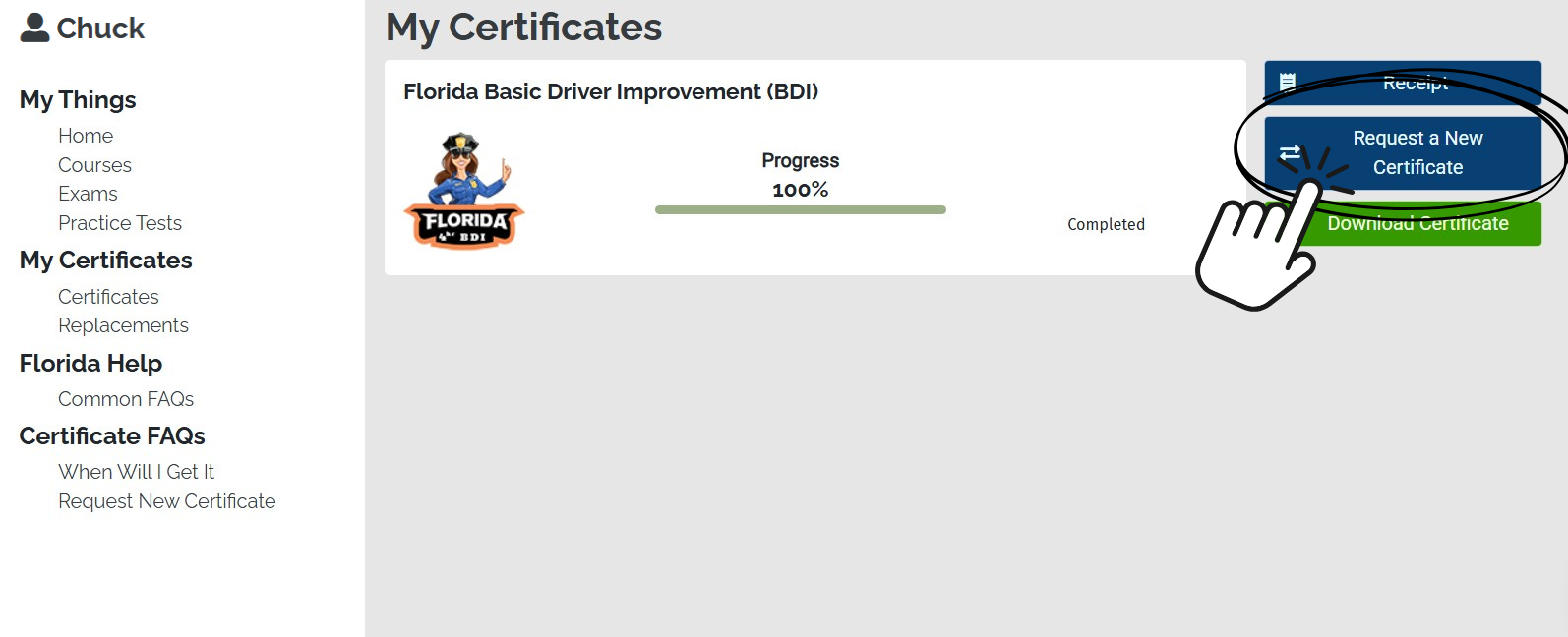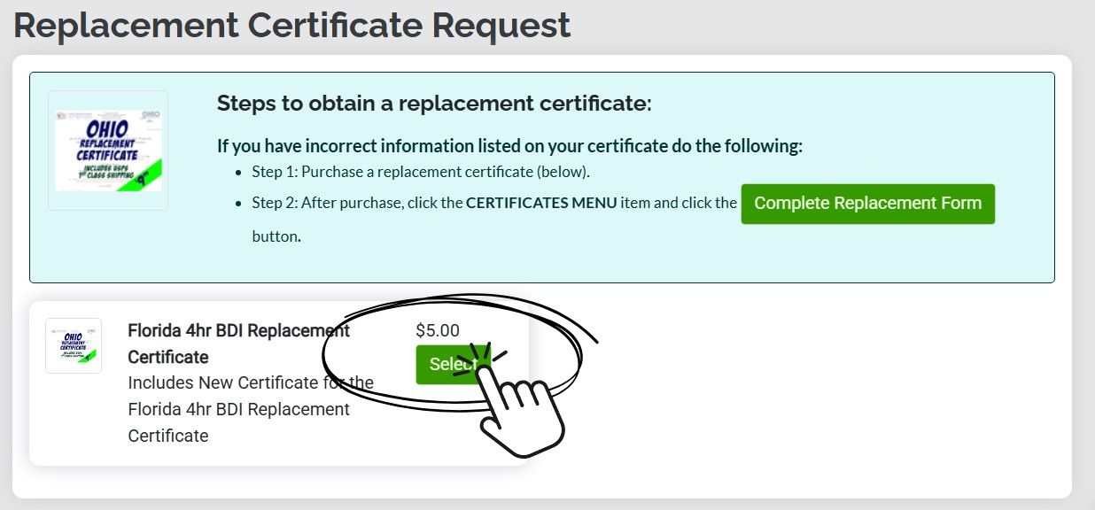 FLORIDA STATE ONLY: This applies to getting a new certificate of completion for one of our Florida courses.